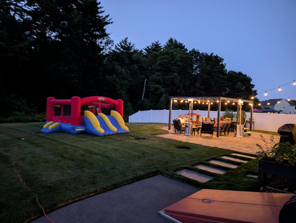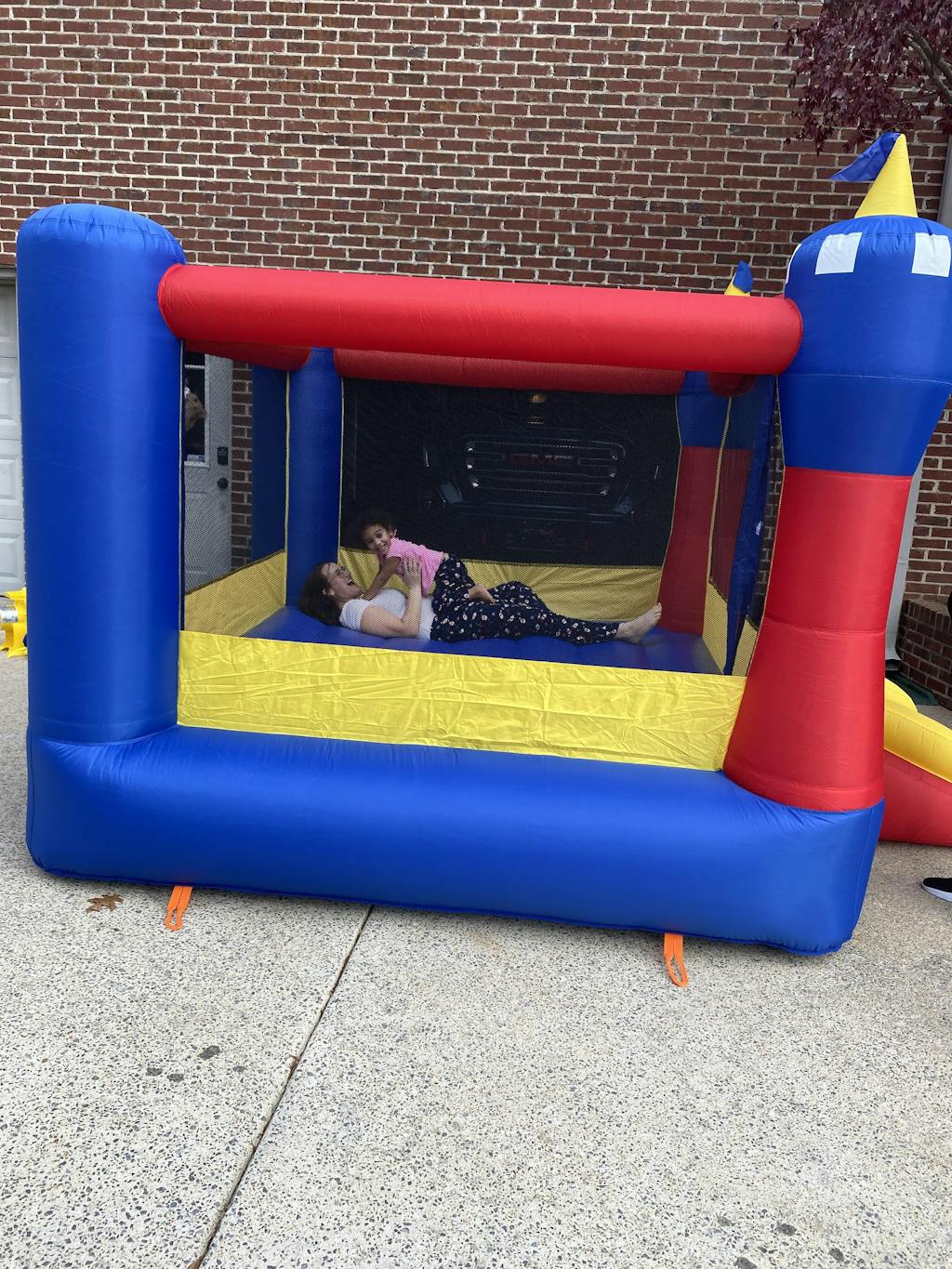 We love the bounce house! The size is perfect because we have it inside! And the amount of kids allowed to jump at once is great! I also like that we can see inside it 360 degrees!